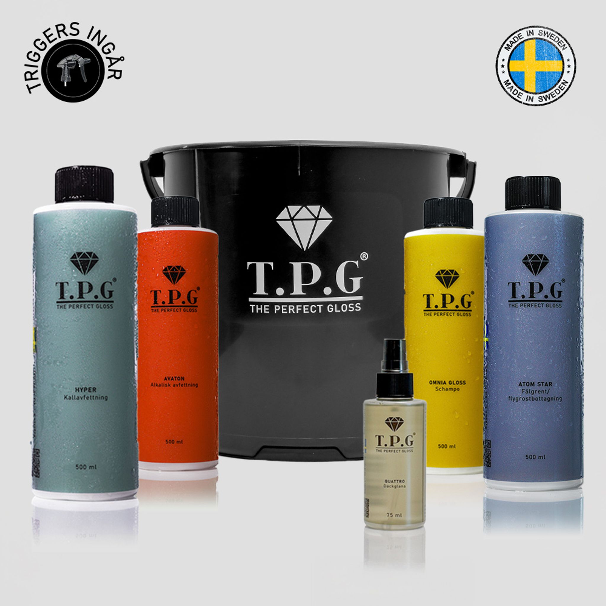 Allt-i-ett för bilen. 5 premiumprodukter, praktisk hink och svensktillverkad kvalitet – för en bil som glänser året runt. + Hyper Kallavfettning!