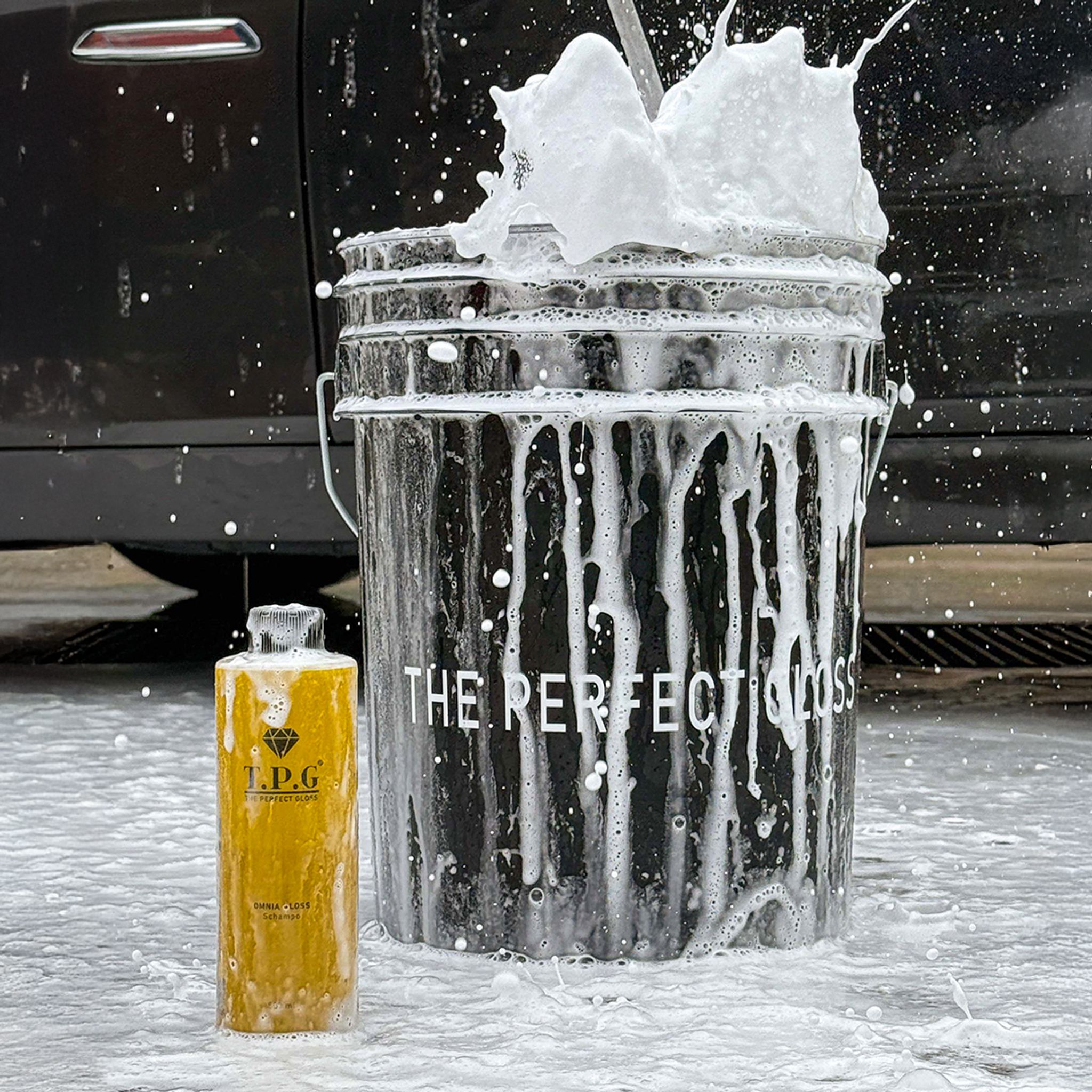 Med tvätthink: Häll en rimlig mängd Omnia Gloss Schampo i en hink med ljummet vatten. För maximalt skum, använd en högtrycksspruta direkt i hinken.
