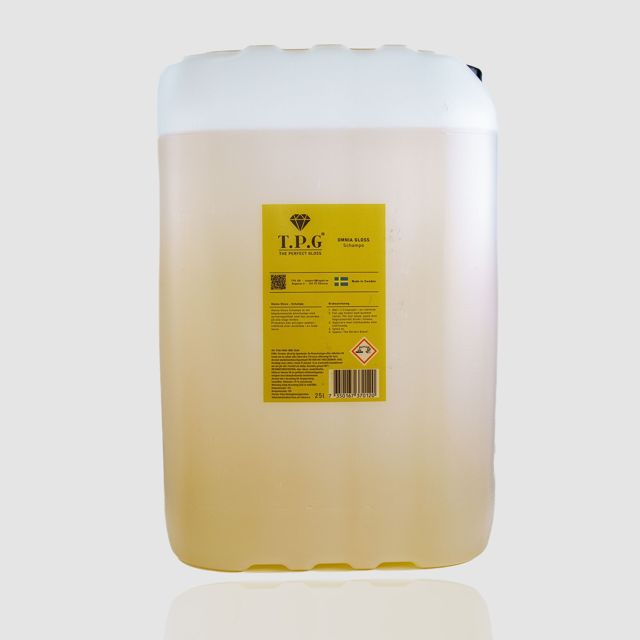 Omnia Gloss Schampo från TPG är ett högskummande bilschampo som ger fantastisk avrinning och sprider en härlig doft under tvättprocessen. Det kan användas på alla typer av fordon och ger en grundlig rengöring med en blank och ren yta nästan utan vattenfläckar. Upplev en skinande ren och väldoftande bil med Omnia Gloss Schampo.
